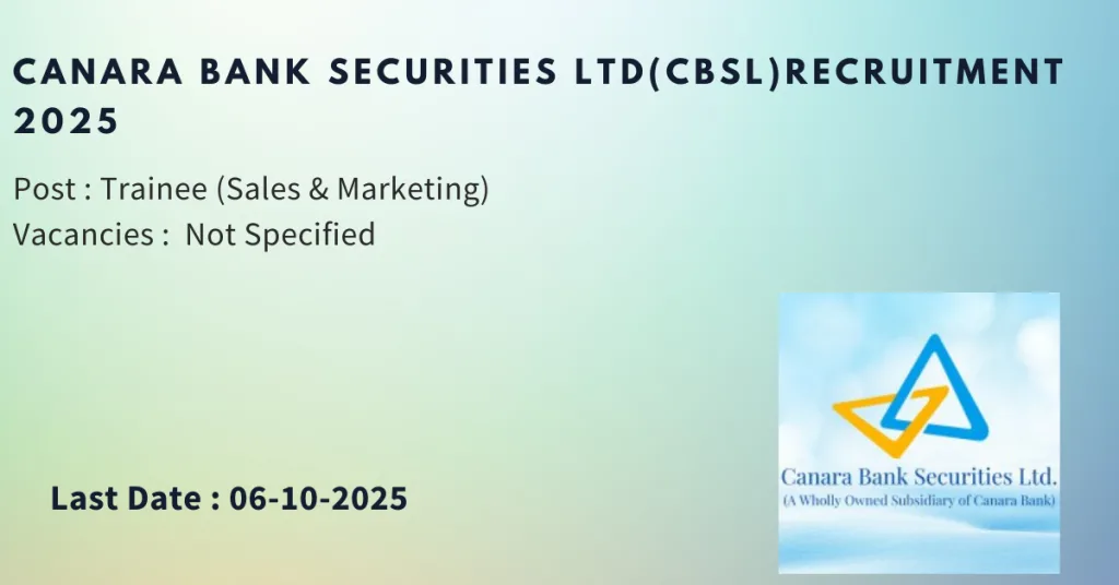 Canara Bank Securities Recruitment 2025