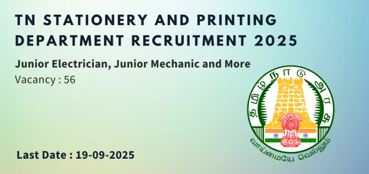 The Tamil Nadu Stationery and Printing Department has released an official notification for the recruitment of 56 vacancies across various technical posts, including Junior Electrician, Junior Mechanic, Assistant Offset Machine Technician, and Plumber Cum...