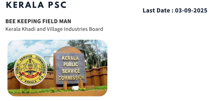 Kerala PSC Recruitment – Bee Keeping Field Man Department Kerala Khadi and Village Industries Board Post Name Bee Keeping Field Man Scale of Pay ₹26,500 – ₹60,700 Vacancies 26 (Statewide) Method of Appointment Direct...