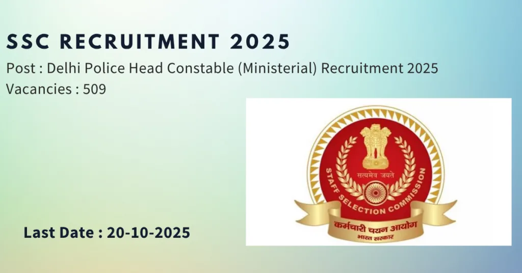 SSC Delhi Police Head Constable (Ministerial) Recruitment 2025Β