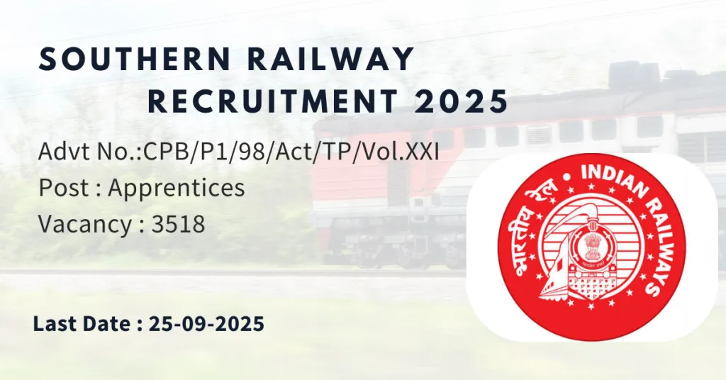 β Southern Railway Apprentices Recruitment 2025 Notification PDF is available on the official website from 25-08-2025.