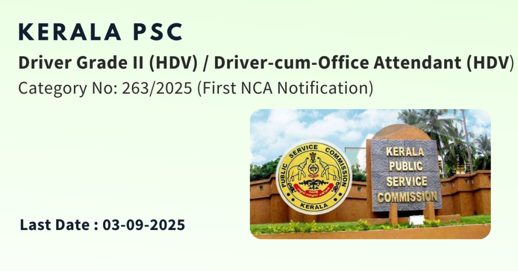 Kerala PSC Recruitment 2025 – Driver Grade II (HDV) / Driver-cum-Office Attendant (HDV)